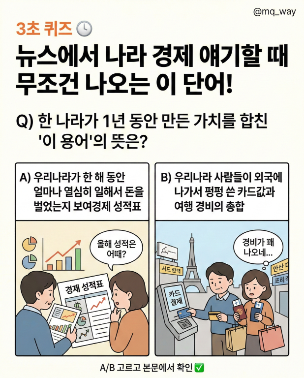3초 퀴즈 ⏱️ 뉴스에서 나라 경제 얘기할 때 무조건 나오는 이 단어!